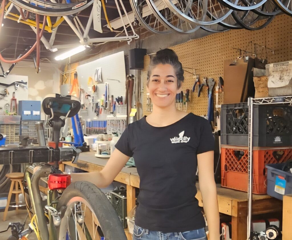 Laura Berol started learning bicycle repair at Community Bikes in Charlottesville in 2004. That makes her the slowest bike-repair-learner ever, since she took 19 years off to raise kids before showing up at Vélocity in 2023. She’s so glad she did! Vélocity spreads the thrill of traveling under your own steam and fixing your own bike when it breaks. And more than anything, Vélocity brings together amazing people.