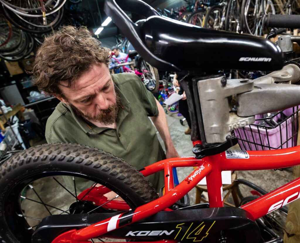 Tyler Brin started volunteering with Velocity shortly after moving to the area in 2024. He enjoys tinkering with all things mechanical and especially loves being able to bring neglected bicycles back to life. When not working on bikes, you may find him cruising on the Mt Vernon Trail or exploring some of the local mountain bike trails.